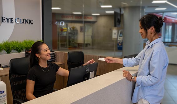 An receptionist is handling a business card to the client November 11, 2025 568 × 334 Eye Examination Centre Toronto